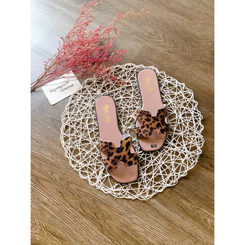 Giày Dép Nữ > Xăng-đan và dép > Xăng-đan đế bằng || Dép chữ H caro thổ cẩm, da beo