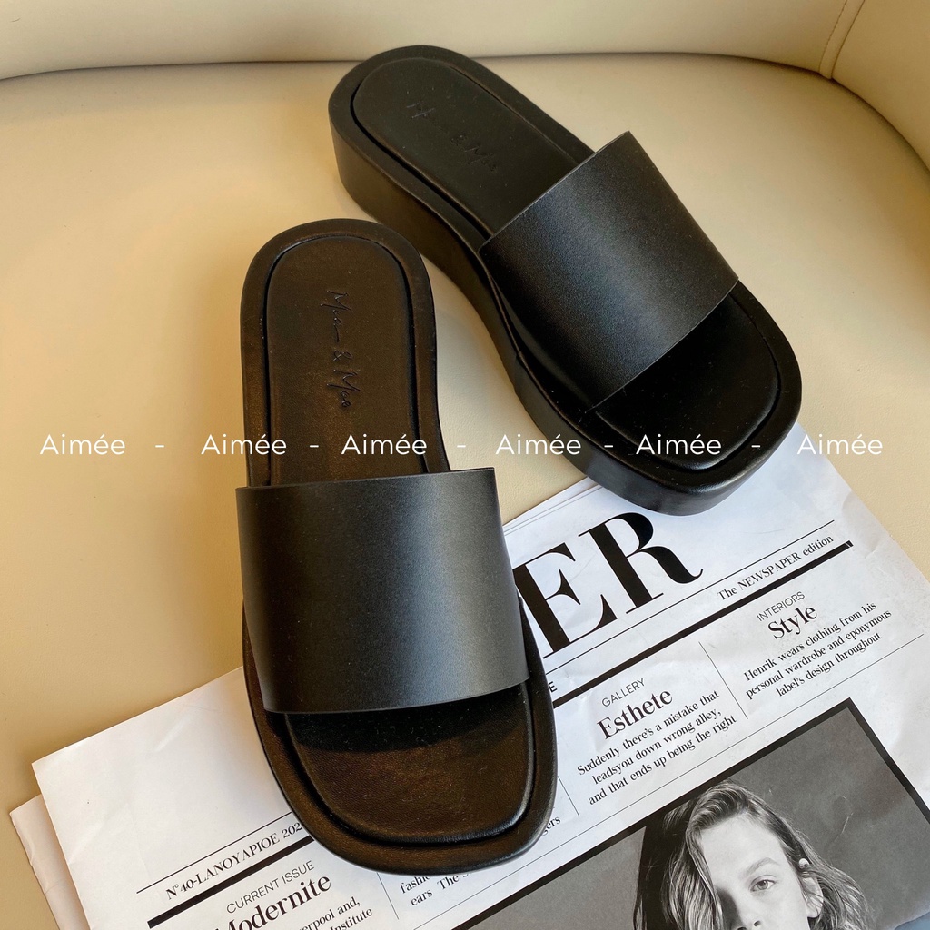 Dép Đế Xuồng Bảng Ngang Da Mềm Mũi Vuông Da Mềm Cực Êm Chân