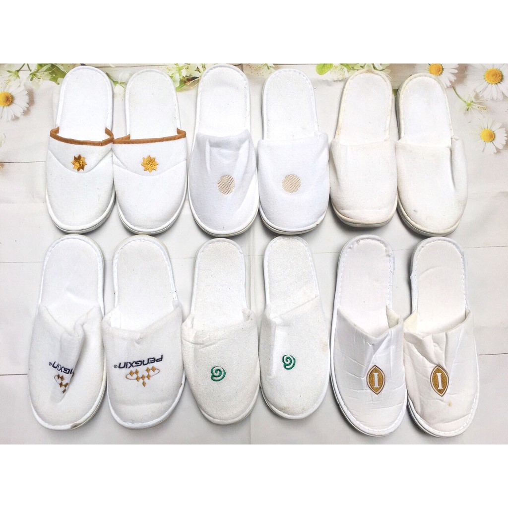 Dép đi trong nhà màu trắng lẫn lộn nhiều mẫu, dày dặn & nhẹ. Shop sẽ lấy mẫu ngẫu nhiên ạ.
