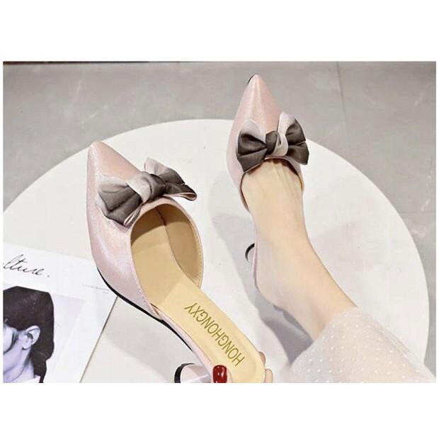 Giày Dép Nữ > Giày cao gót || Dép guốc nữ phối nơ gót 5cm điệu đà