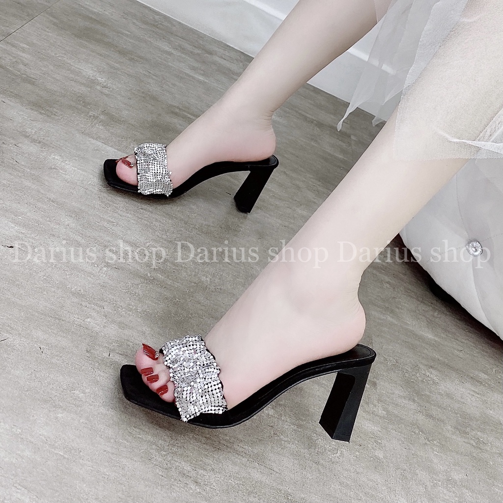 Giới thiệu Dép guốc quai ngang nhún đính đá kim tuyến 7cm - BT600
