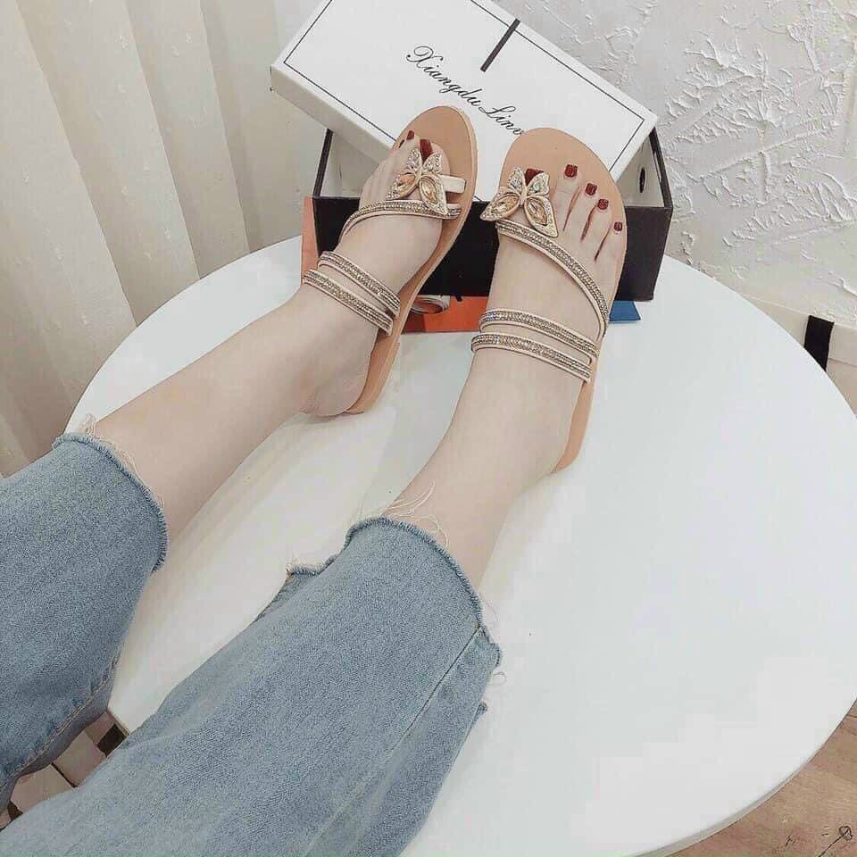 Giày Dép Nữ > Xăng-đan và dép > Dép kẹp/ dép xỏ ngón || Dép kẹp Nữ BAMY xỏ ngón đính xoàn nơ bướm xinh