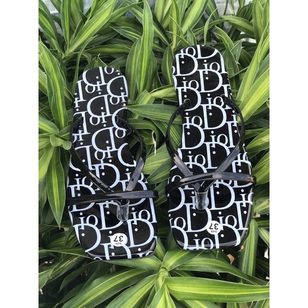 Dép lê đế bệt da bóng in chữ D