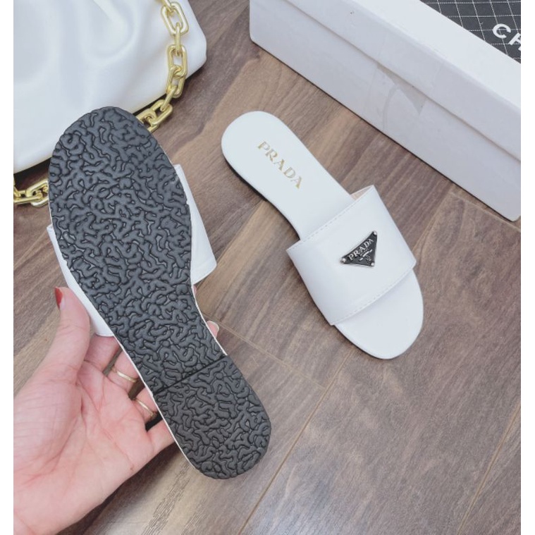 Dép nữ đế bằng quai ngang bản da Prada Siêu sang