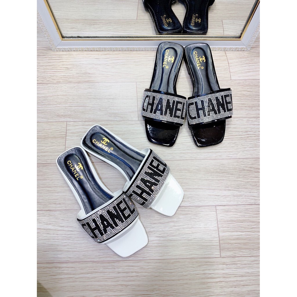 Giày Dép Nữ > Xăng-đan và dép > Xăng-đan đế bằng || Dép lê quai ngang đính đá họa tiết