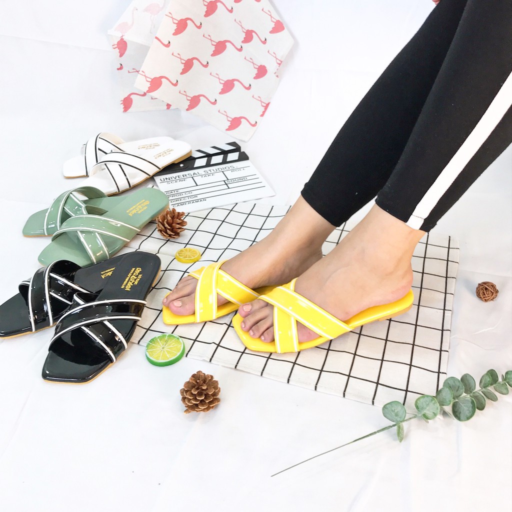 Dép nữ thời trang big size quai chéo đế bằng