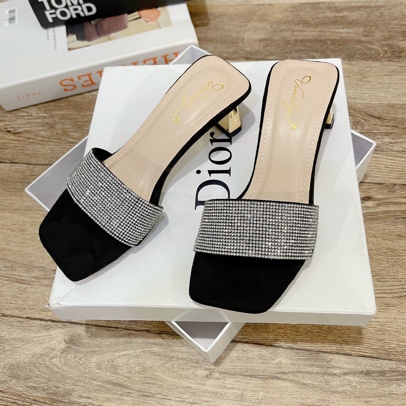 Giày Dép Nữ > Giày cao gót || DÉP QUAI NGANG ĐÁ GÓT DẸT 3P