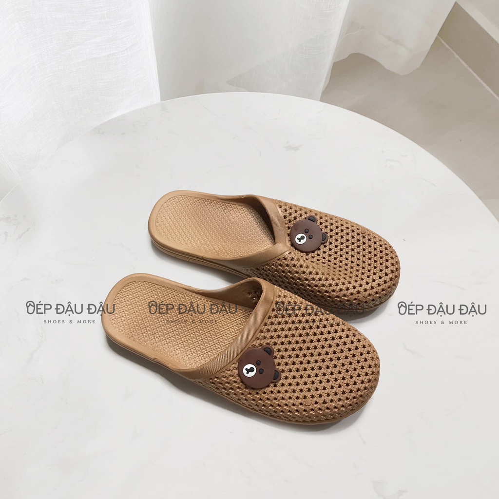 Giới thiệu Dép Sục Nhựa Lỗ Nữ Sticker Gấu Brown Nhựa Dẻo Đi Mưa Êm Ái Thời Trang