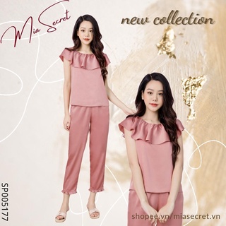 Đồ Bộ Nữ mặc nhà MIA SECRET, đồ ngủ pijama lụa tằm băng cao cấp thiết kế khoét nách bèo trùm vai dễ thương MIA05177