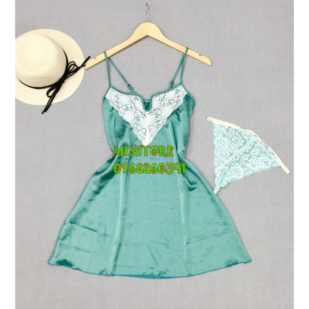 Thời Trang Nữ > Đồ ngủ > Váy ngủ || [DƯỚI 55KG] VÁY SATIN PHỐI REN CỔ V SEXY GỢI CẢM KÈM CHIP, VẢI SATIN XỊN MẶC BAO MÁT HÀNG NHÀ MAY - Váy Satin cổ V