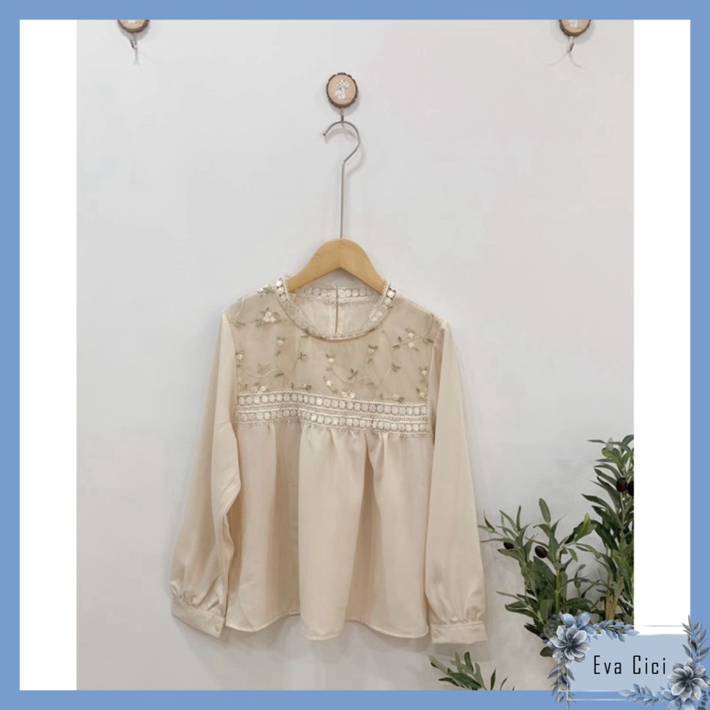 Giới thiệu {EVACICI} Áo sơ mi hoa ren ngực thời trang hot hit, Áo sơ mi cổ điệu dài tay ảnh thật