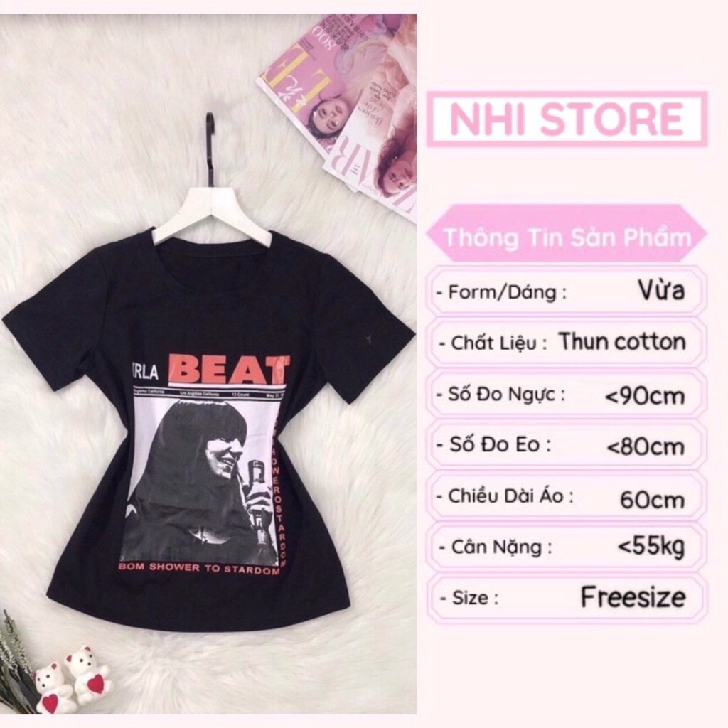 Giới thiệu [FREESHIP 50K] ÁO THUN NHISTORE CỔ TRÒN NỮ IN CÔ GÁI CỰC CHẤT FREESIZE DƯỚI 55KG