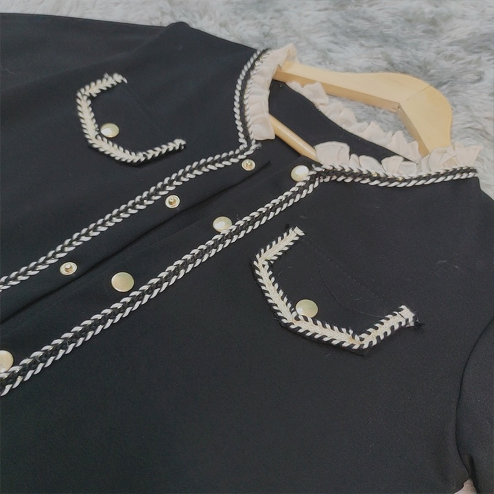 Giới thiệu FREESHIP Áo khoác nữ umi dạ đen viền ren bèo, chất umi dạ dày dặn, phong cách xang trọng lên form cực chuẩn