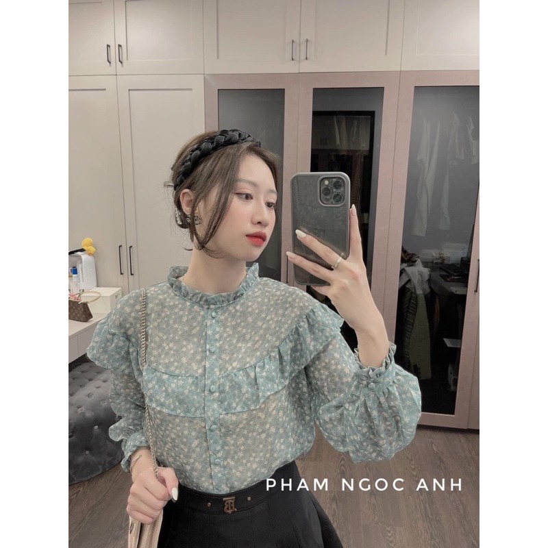 Giới thiệu [FREESHIP - HÀNG LOẠI 1] ÁO SƠ MI HOA XANH VIỀN BÈO SIÊU XINH