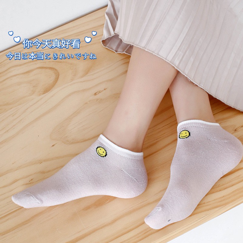 Giới thiệu ❤️FREESHIP❤️ Tất - Vớ nữ mặt cười Cotton Trơn Ulzzang Cổ Ngắn gân tăm Phong Cách Vintage Hàn Quốc