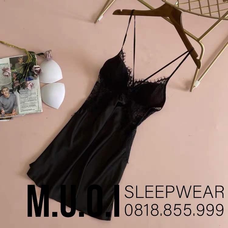 Thời Trang Nữ > Đồ ngủ > Váy ngủ || [FREESHIP] Váy ngủ sexy QUẢNG CHÂU-SX 062-Váy ngủ lụa phối ren ngực đan dây hông QUẢNG CHÂU - hàng có sẵn( video+ ảnh)