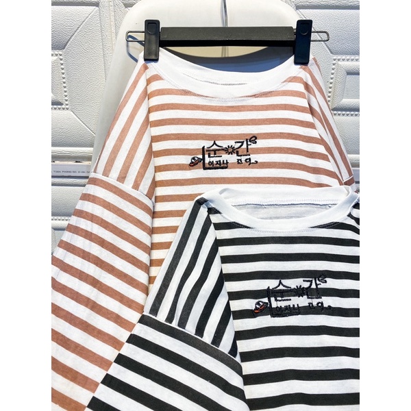 Thời Trang Nữ > Áo > Áo thun || [GIÁ HUỶ DIỆT] Áo kẻ thụng chữ hàn from unisex hai màu cổ tròn (hàng sẵn)