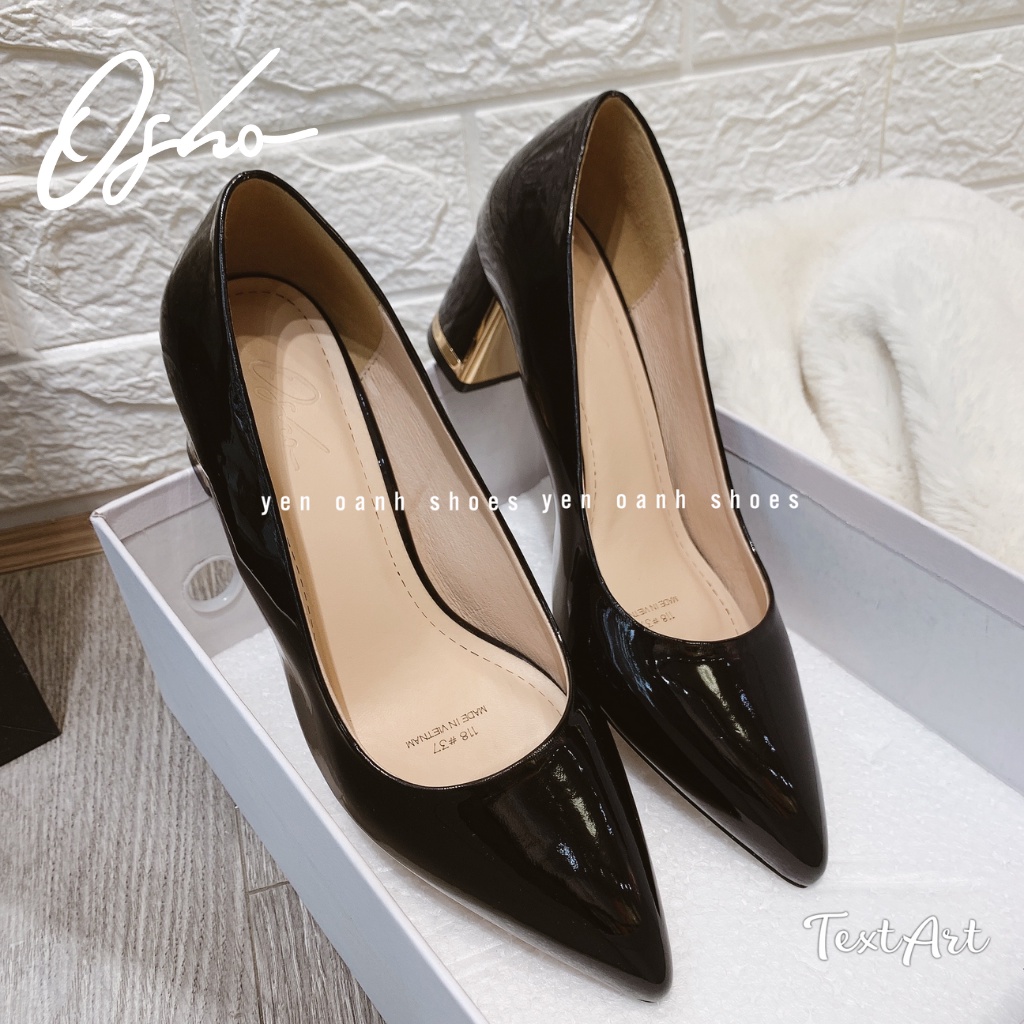 Giới thiệu Giày Cao Gót Thiết Kế OSHO Mũi Nhọn Đế Vuông Cao 5cm, Da PU Bóng Mềm, Đế Cao Su Đúc Nguyên Khối 118