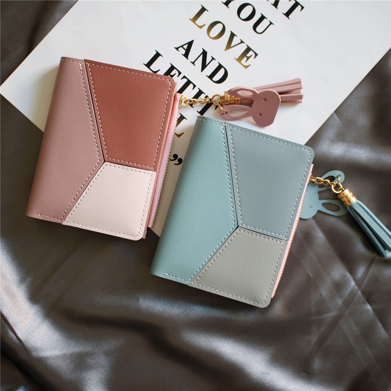 Ví nữ ngắn phối màu, có ngăn đựng tiền xu