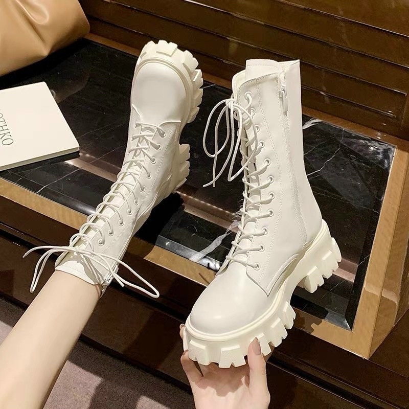 Giày Dép Nữ > Bốt > Bốt thời trang || GIÀY BỐT CỔ CAO ĐAN DÂY ĐẾ THÔ SANG CHẢNH