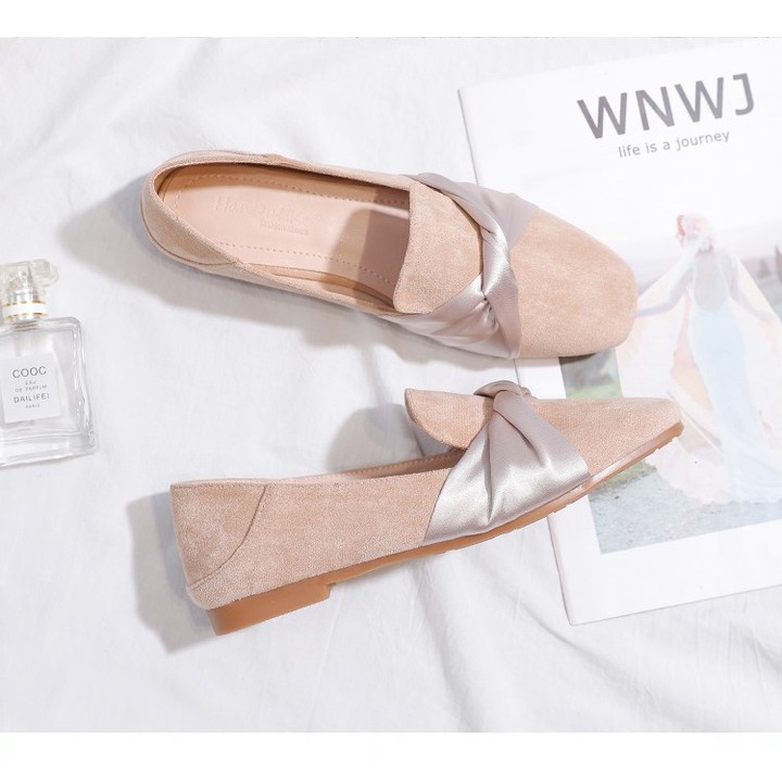 Giới thiệu Giày búp bê da lộ khăn nơ