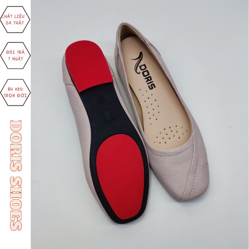 Giày búp bê Doris đế bệt, ❤️❤️FREESHIP❤️❤️ Giày BÚP BÊ da thật mũi vuông có viền màu hồng, GIÀY DÉP NỮ DORIS DR003..