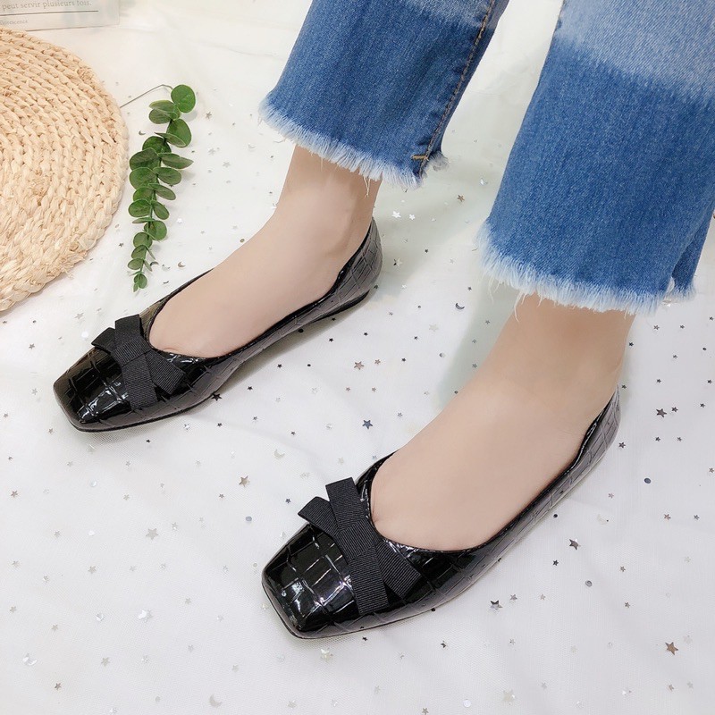 Giới thiệu GIÀY BÚP BÊ MUSO DA VÂN MŨI VUÔNG NƠ LỤA