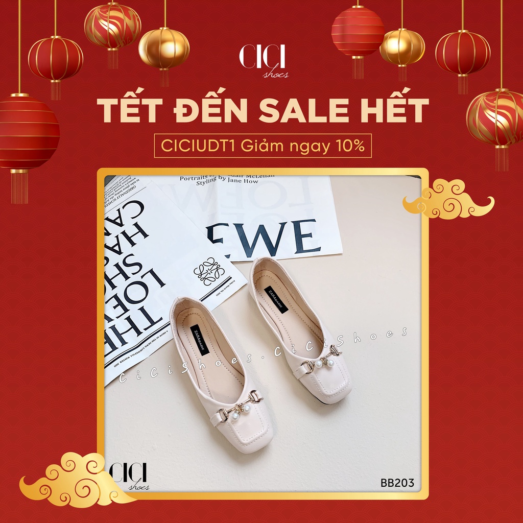 Giới thiệu Giày búp bê nữ CiCi Shoes mũi vuông, giầy bệt xích bé đính ngọc - BB203