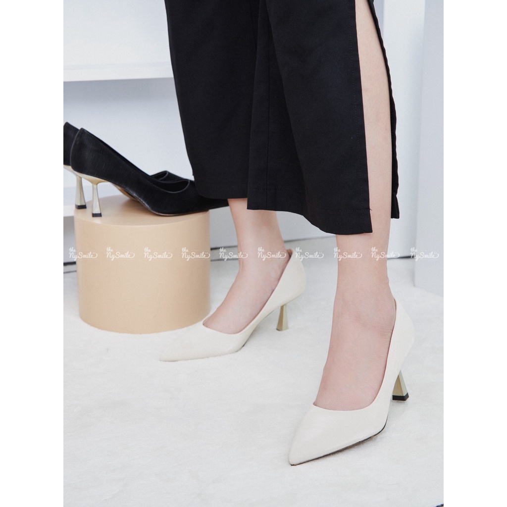 Giới thiệu Giày Cao gót 6cm da vân gót vàng ánh - THENYSMILE - TELUN (form to lùi size)