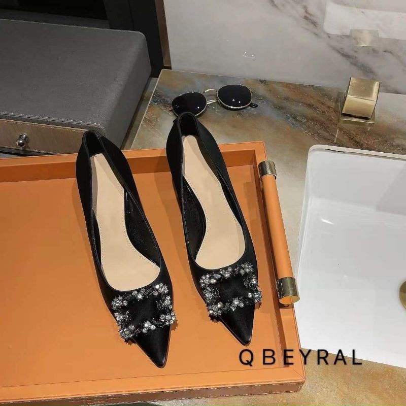 Giày Dép Nữ > Giày cao gót || giay cao gót đá vuông xanh kem đen
