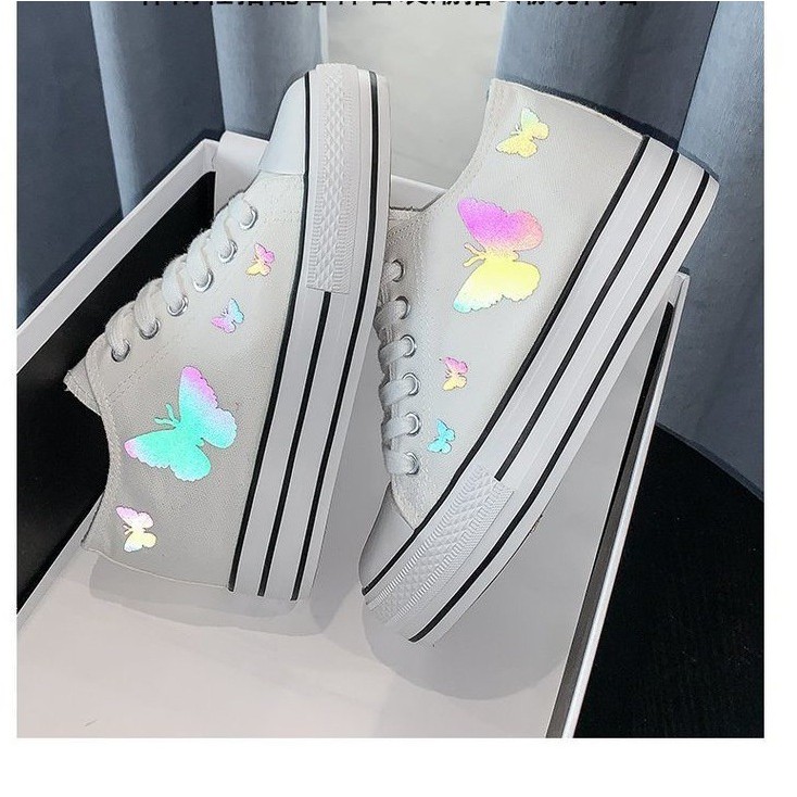 Giới thiệu Giày CV nữ Cổ Thấp độn đế in hình buffterfy phản quang mới