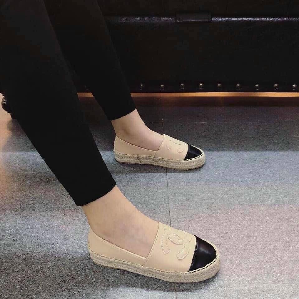 Giày lười nữ chữ CC đế cói siêu nhẹ da mềm