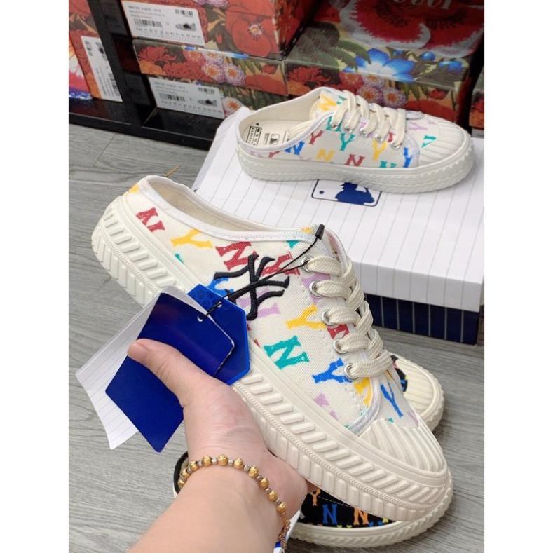 Giới thiệu Giày thể thao Sục nữ MLB ny trắng họa tiết Hot trend, Giày sneaker Sục MLB ny Lười đạp gót dùng đi học,tập gym,chạy bộ