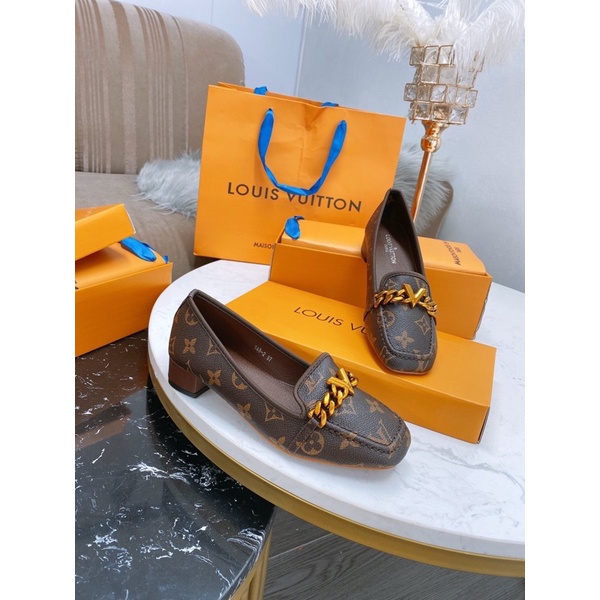 Giày Dép Nữ > Giày đế bằng > Giày lười || Giày moca gót vuông 2f. Chất da mềm dập logo họa tiết. Hàng Super Fullbox + bill + Túi Giấy
