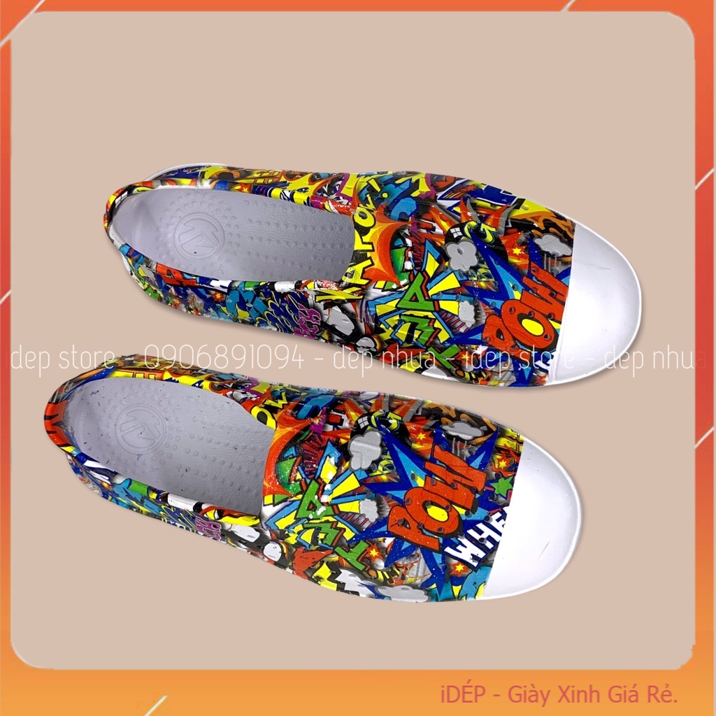 Giới thiệu Giày nhựa nữ đi mưa họa tiết POW siêu nhẹ- GL030- Giày lỗ chống nước siêu bền iDép