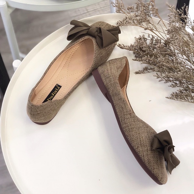 Giới thiệu Giày nữ búp bê đế Bệt Nơ Vải mũi tròn dáng tiểu thư hàng đẹp