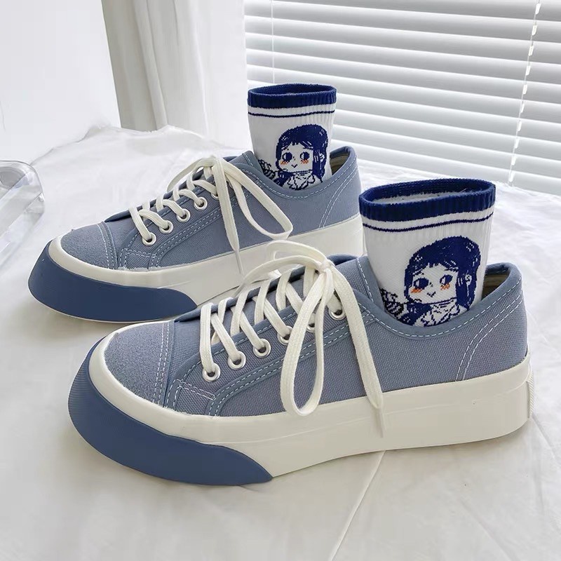 Giới thiệu Giày nữ đế bằng bánh mì basic độn đế 4cm vải canvas bata mới hot phong cách retro ulzzang đẹp cá tính, Sneaker nữ 2021
