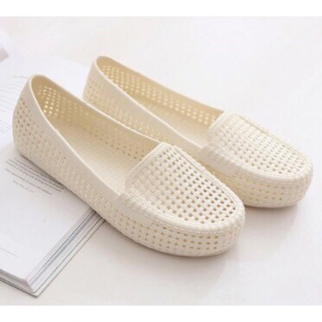 Giày Dép Nữ > Giày đế bằng > Giày sục & Giày búp bê || Giày nữ nhựa mềm đi mưa ( đen + kem)