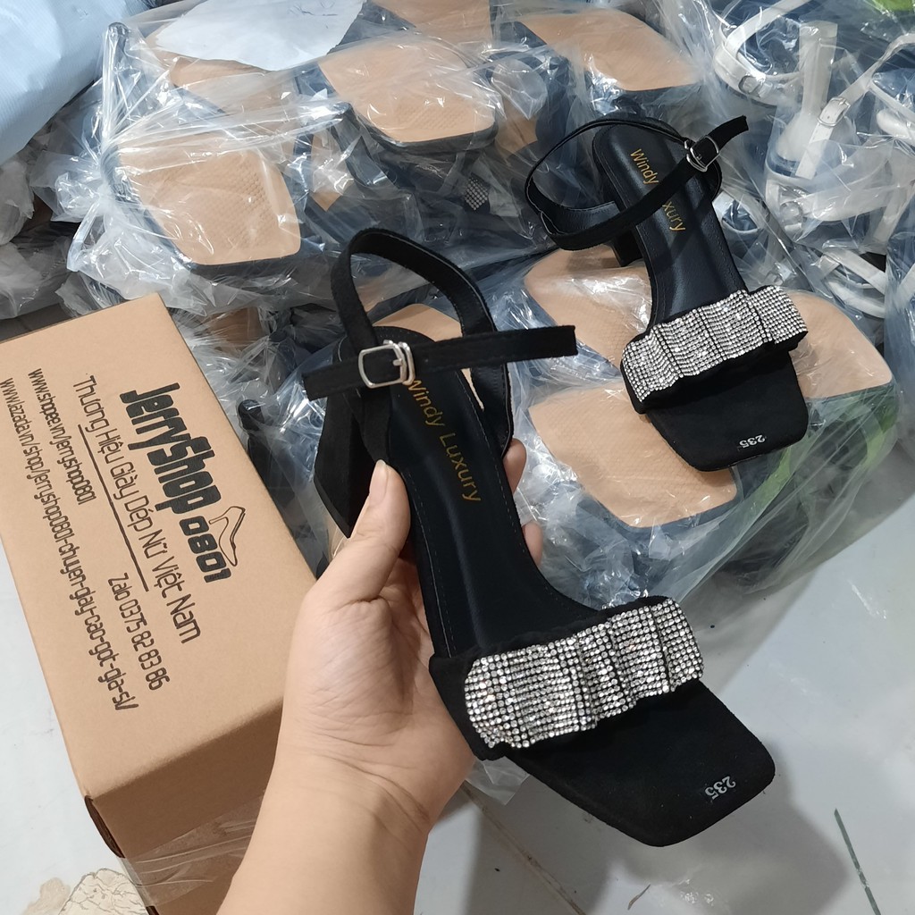 Giới thiệu Giày nữ, Sandal cao gót nữ 5p quai ngang nhún Kim Tuyến mẫu mới siêu xinh