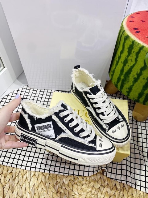 Giày nữ thấp cổ Xvesell vải tua mũi chữ kí