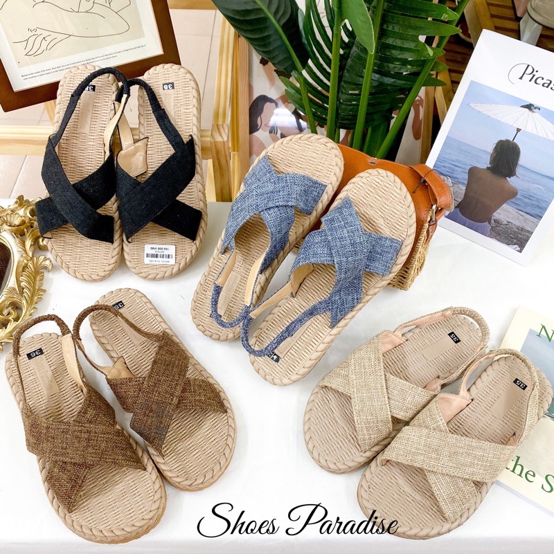 Giới thiệu Giày Sandal Đế Nhựa Chéo Cói [ SP40 ] Sandal Cói Đế Mềm Chống Nước Đi học,đi chơi thoải mái