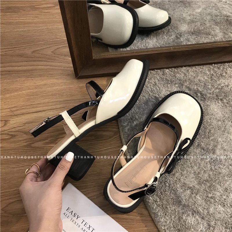Giới thiệu Giày Sandal Nữ Mary Jane Da Bóng Gót Vuông Phối Nơ Thời Trang - SA013