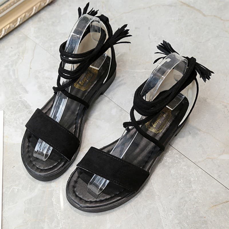 Giới thiệu Giày sandal quai ngang cột dây tua rua