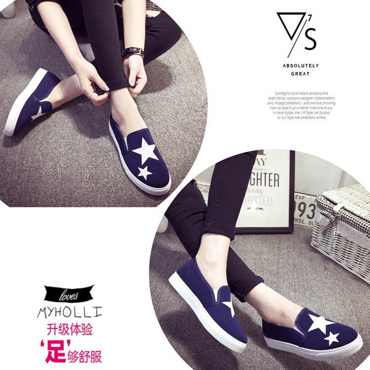Giày Dép Nữ > Giày đế bằng > Giày sục & Giày búp bê || Giày slip on ngôi sao màu xanh đen Koin VV48