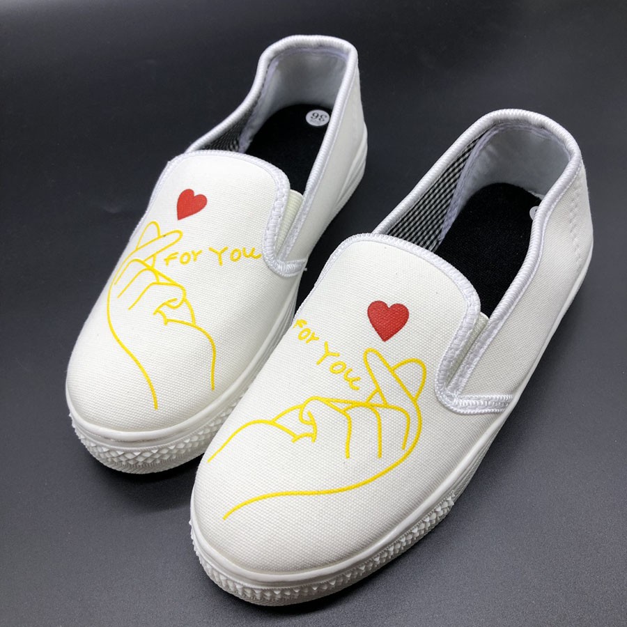 Giày Dép Nữ > Giày đế bằng > Giày sục & Giày búp bê || Giày slip on thả tim màu trắng Koin VV202