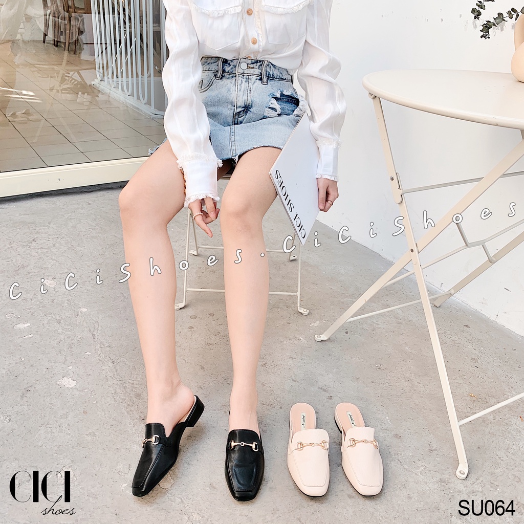 Giày sục cao gót nữ CiCi Shoes gót da 1cm, dép sục da khoá móc xích bé - SU064