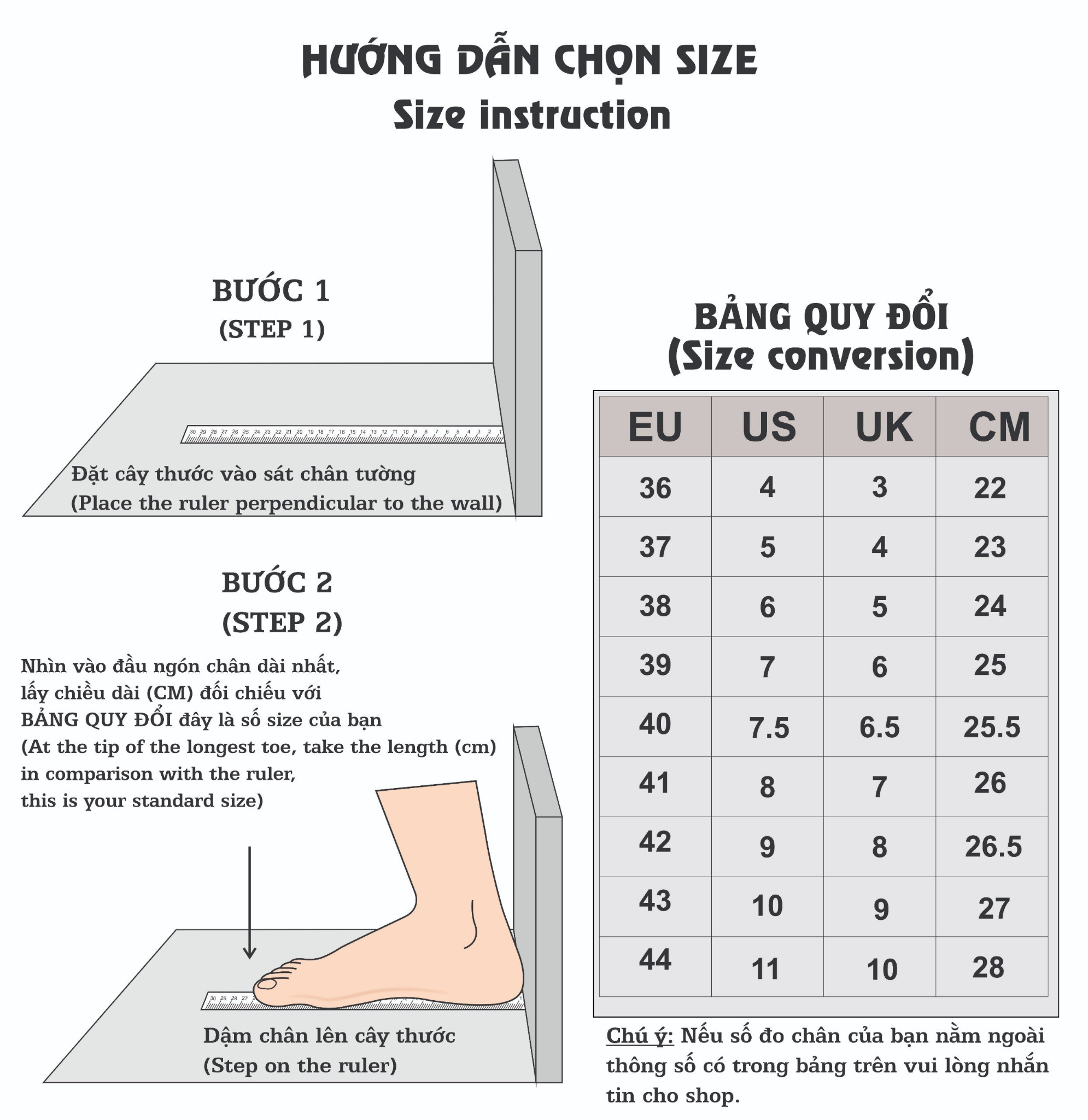 HƯỚNG DẪN CHỌN SIZE
