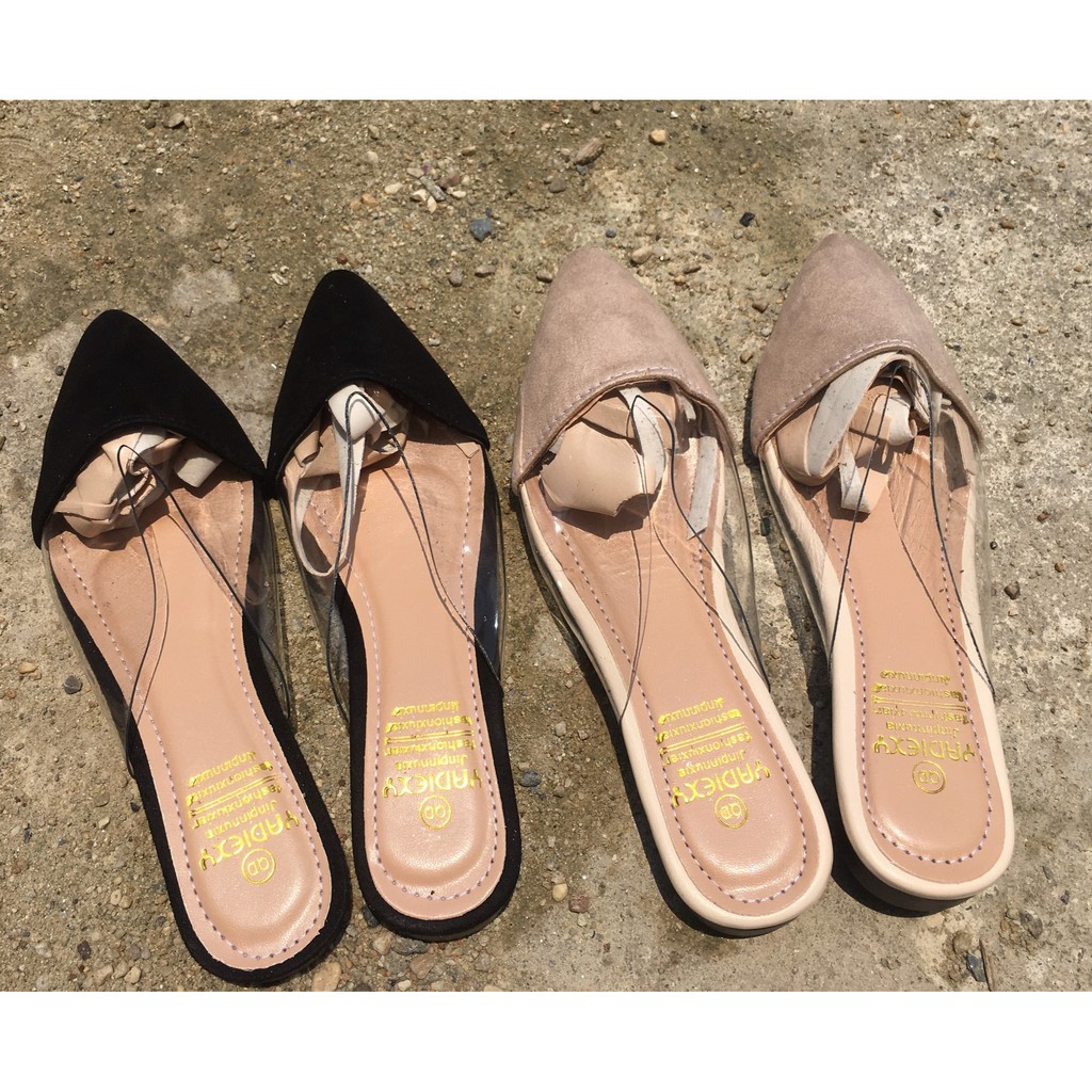 => Mẫu giày thiết kế kiểu Sục Không Gót Mũi nhọn phối da lộn trong suốt