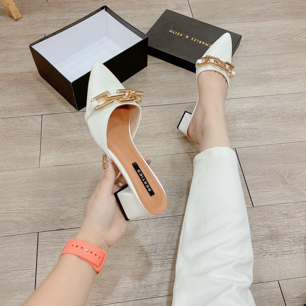 Giới thiệu Giày/Sục Nữ Mũi Nhọn Phối Dây Xích Chất Da Xi Cao Cấp Đế Cao 5p Sang Chảnh Ôm From Lên Dáng Siêu Đẹp-T160
