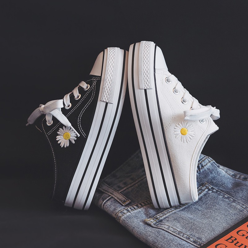 Giày sục nữ thể thao đạp gót thêu hoa cúc độn đế 5cm siêu đẹp hot 2021